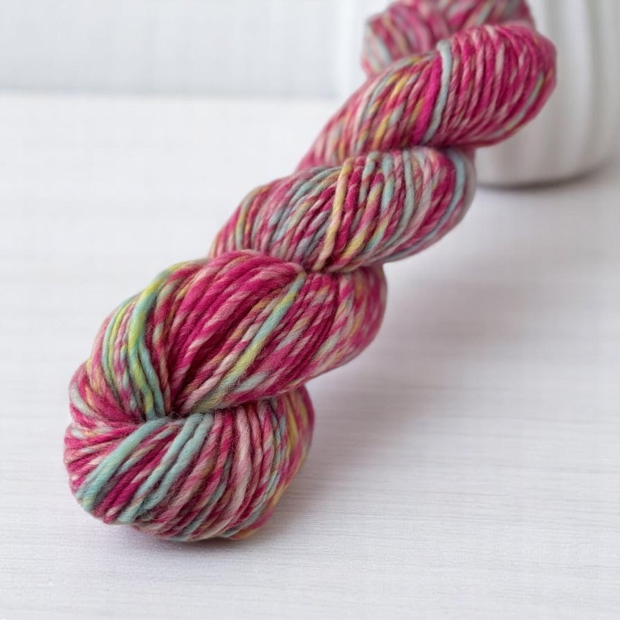 様々な色が混ざり合った糸は、編んでいる最中に色が変わる楽しさを提供します。