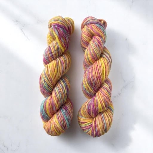 様々な色が混ざり合った糸は、編んでいる最中に色が変わる楽しさを提供します。