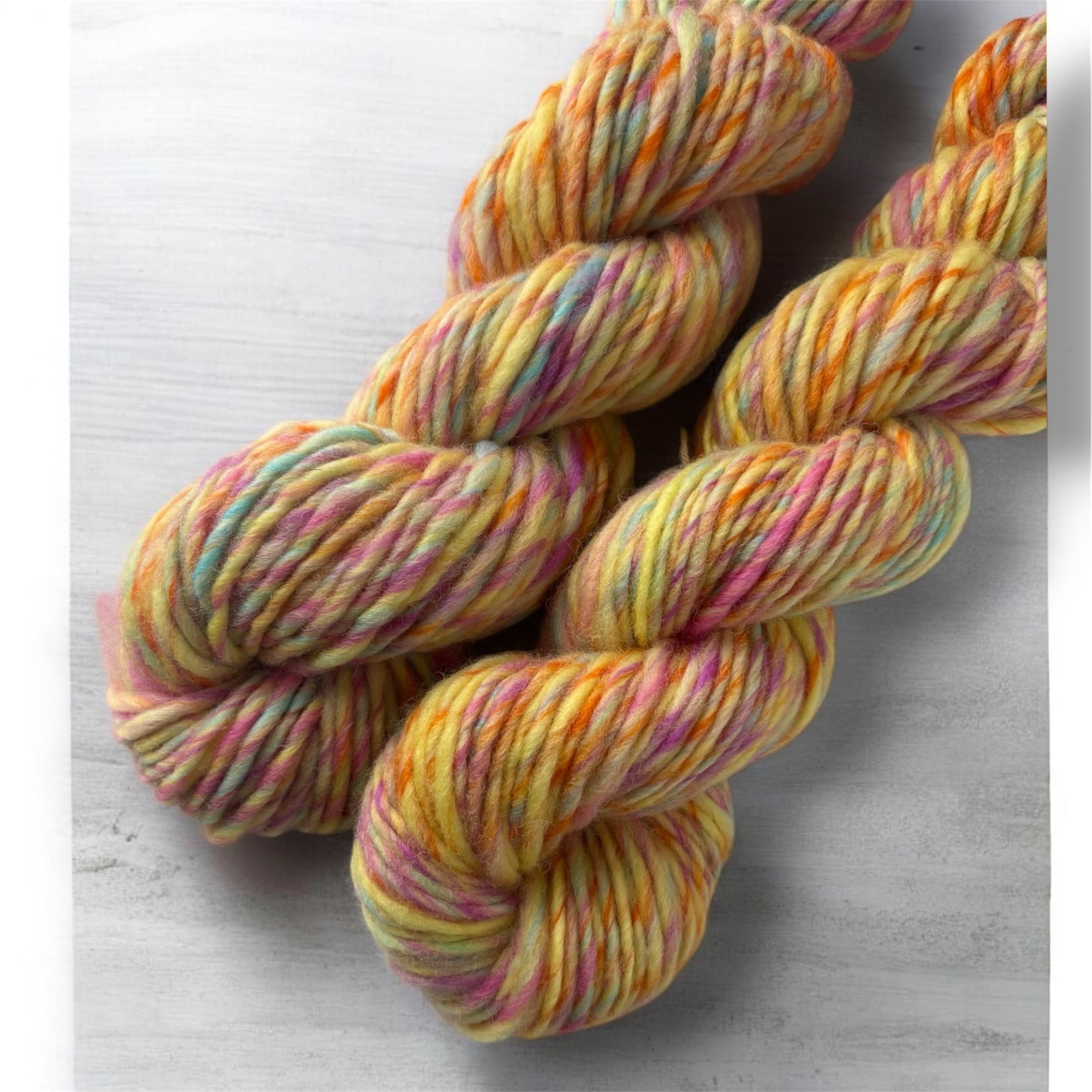 様々な色が混ざり合った糸は、編んでいる最中に色が変わる楽しさを提供します。